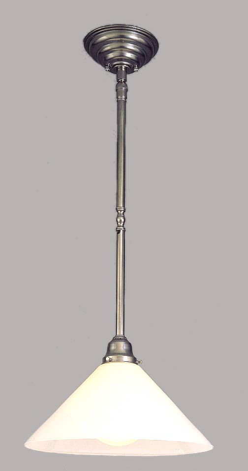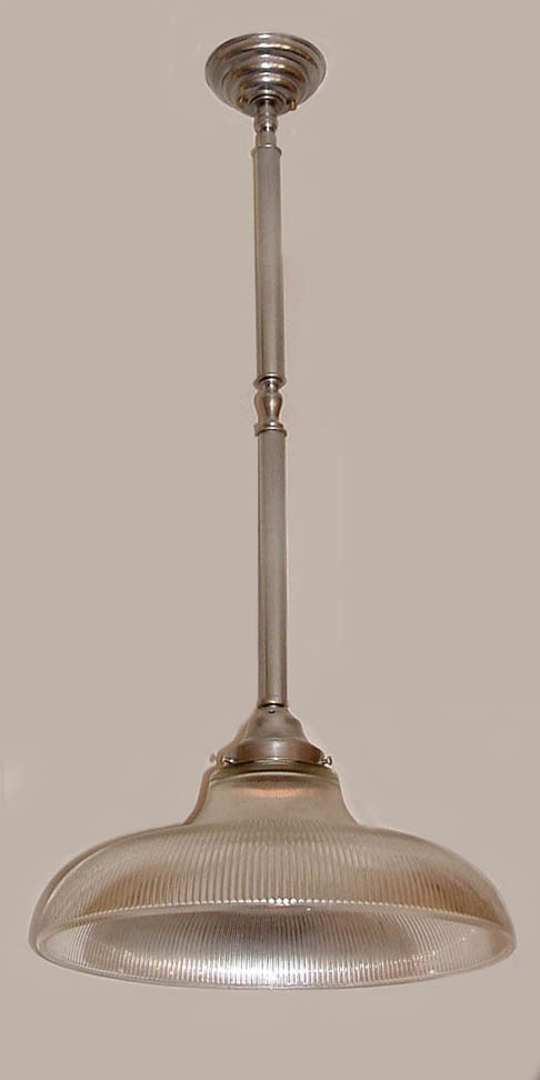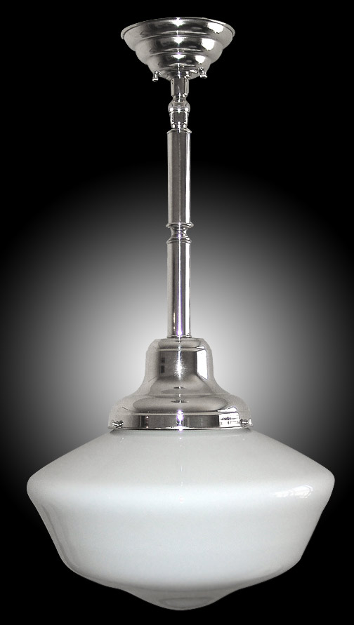 A Classic Schoolhouse Pendant in Polished Nickel Finish.