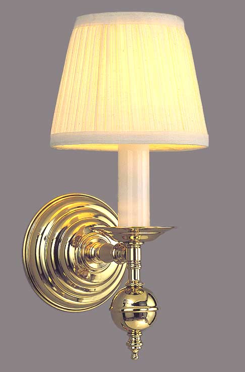 Another gorgeous Colonial in polished brass. Place this vintage wall sconce in your hall, library, study or powder room. Just beautiful with white mushroom pleat fabric shade.